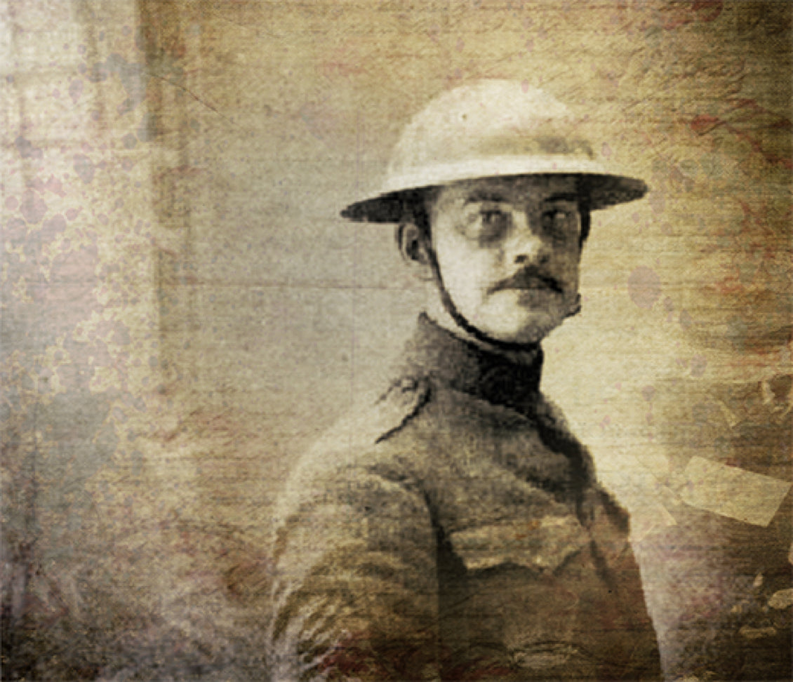 is remembered today for the poem "Trees" published in 1914. Joyce Kilmer was born in New Brunswick, New Jersey in 1886. He was educated at Columbia University and worked for the "The New York Times." He joined the 165th Infantry, (Fighting 69th) and in quickly attained the rank of Sergeant attached to the newly organized Regimental Intelligence Staff. He was encouraged to go to Officer Candidate School and accept a commission, but he said he would rather be a Sergeant in the 69th than an officer in any other unit in the Army.